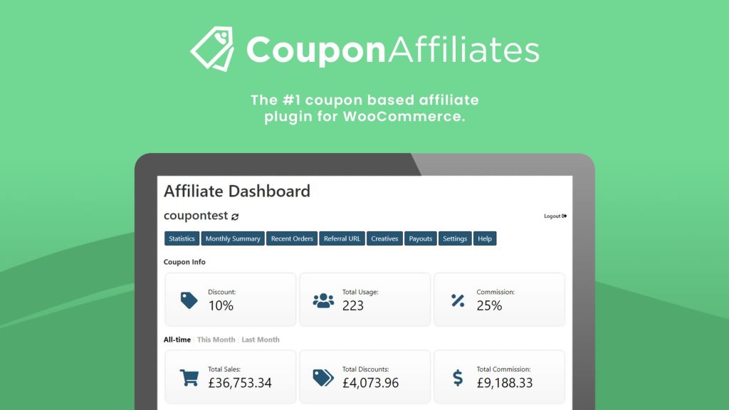 Coupon affiliates allows you to easily create an advanced coupon-based affiliate program for WooCommerce. Give your affiliates access to a user-friendly affiliate dashboard for tracking their statistics, referral URLs, payouts, and more.